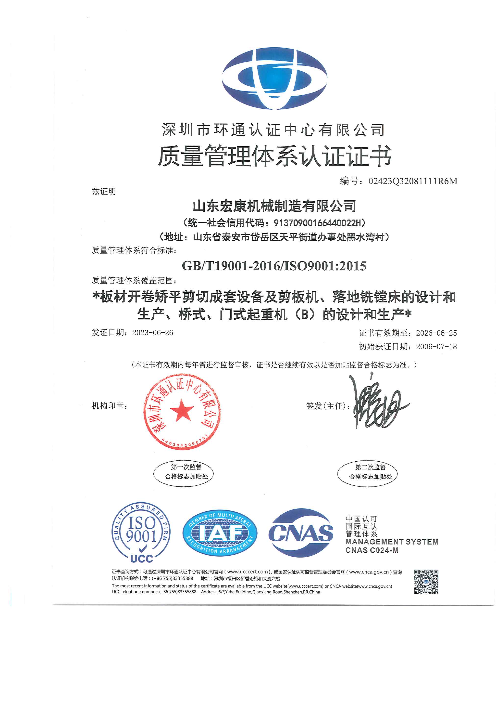 質量管理體系認證證書